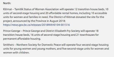 In the Northwest, Smithers and Kitimat were named as the locations for the housing program: