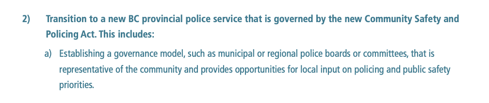 However, of the ten key recommendations of the document, the one which has captured the most attention since the release was the call by the committee to bring back the British Columbia Provincial Police.
